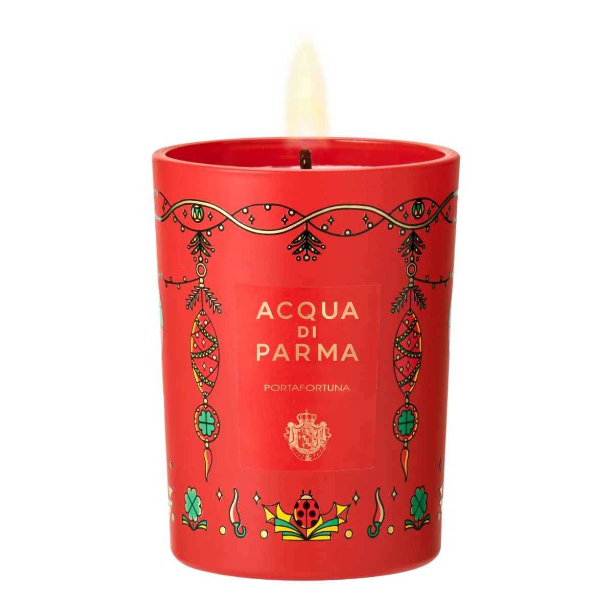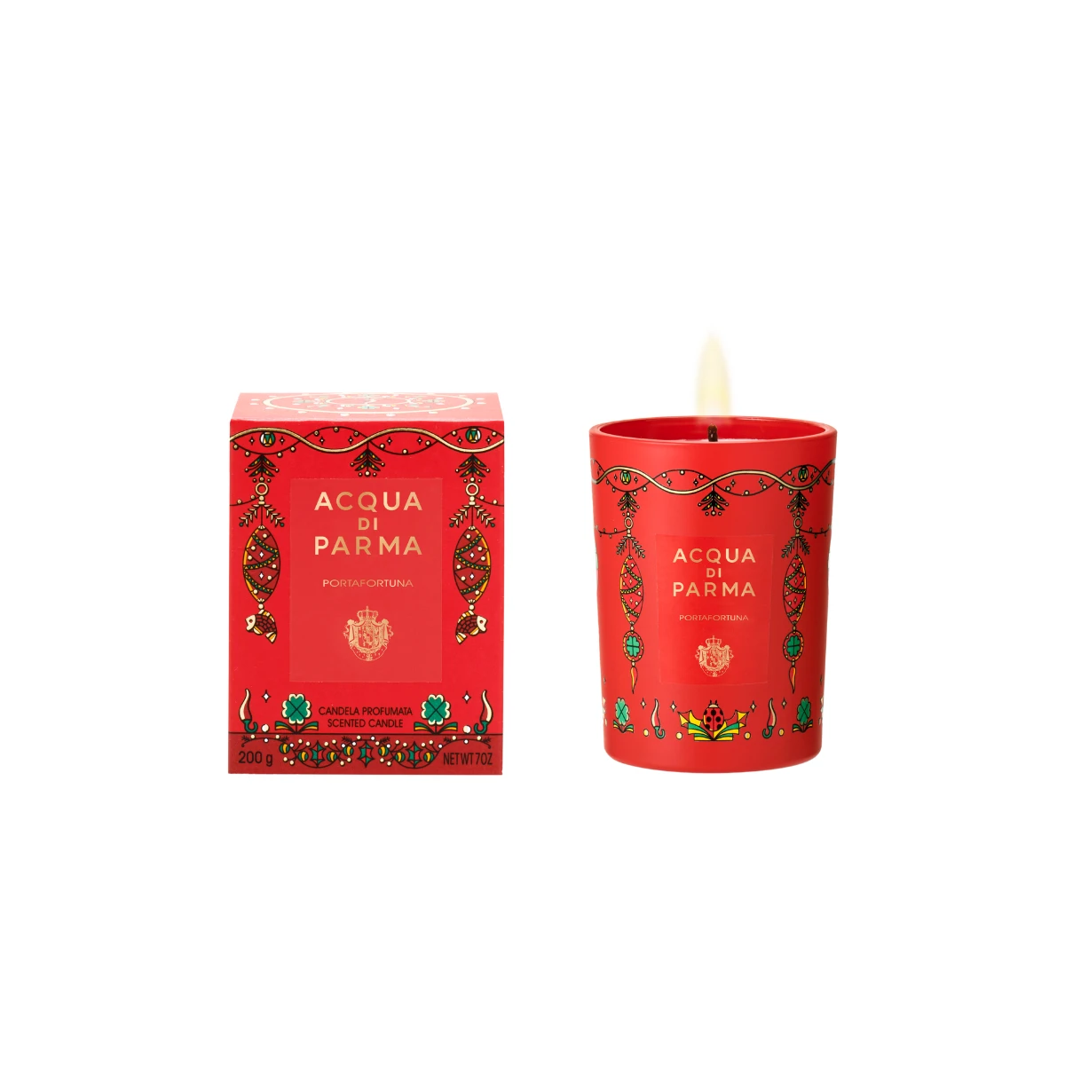 The Portafortuna candle by Acqua di Parma is a celebration of luck, fortune, and Italian luxury. The magic of a new year, abundant with precious wishes and dreams. The mystical and comfortable aura of portafortuna is captured by deep woody and leather notes, while hints of cinnamon and patchouli provide a mysterious touch.