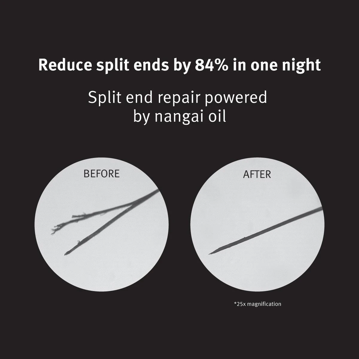 • Nangai oil – Help bring split ends together instantly reducing their appearance by 84% in just one night.