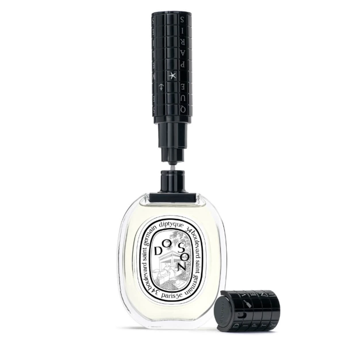 The ideal travel companion, refillable on the spray bottle of any classic diptyque perfume bottle (50 and 100ml), it is also customizable, including a customization kit available with the purchase of the Travel Spray.
