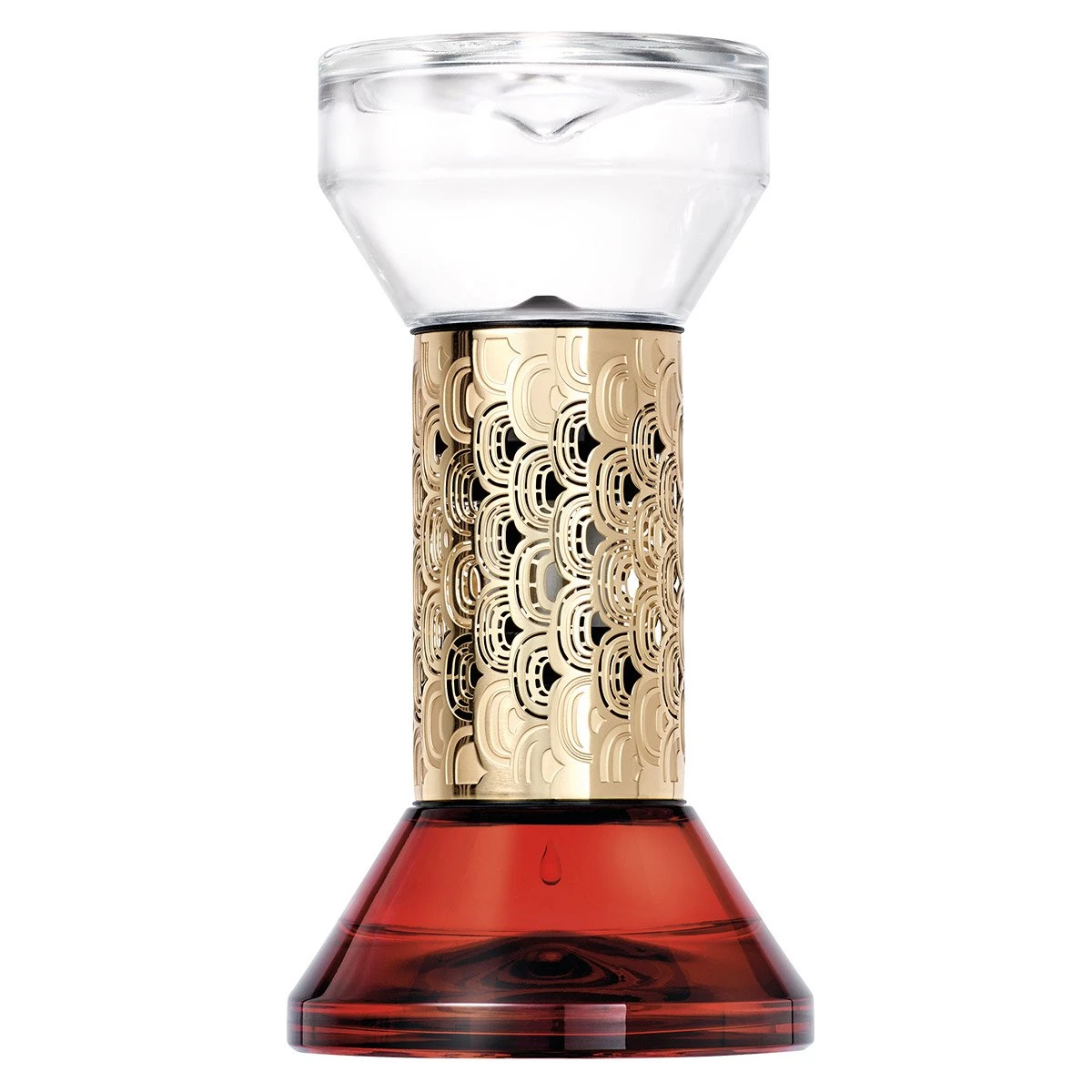 The diptyque hourglass reinvents perfume for the home. Simply turn the hourglass over for a perfumed, sensory experience. By an ingenious process combining gravity and capillarity, the fragrance flows slowly from one glass bottle to another. Its subtle scents then diffuse, for a singular hour: the diptyque hour. Featuring the heady yet fresh and green scent of the tuberose flower, delicately nuanced with fruity and milky notes.