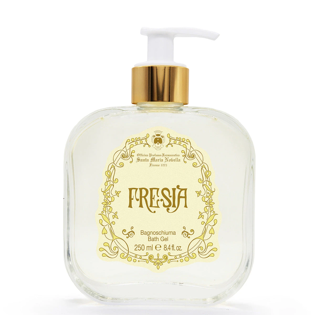 Fresia: the enveloping freshness aroma of Santa Maria Novella. Our bath gel is created to gently cleanse the skin with a special glance to sustainability thanks to the surfactants of vegetable origin chosen for its formulation.
