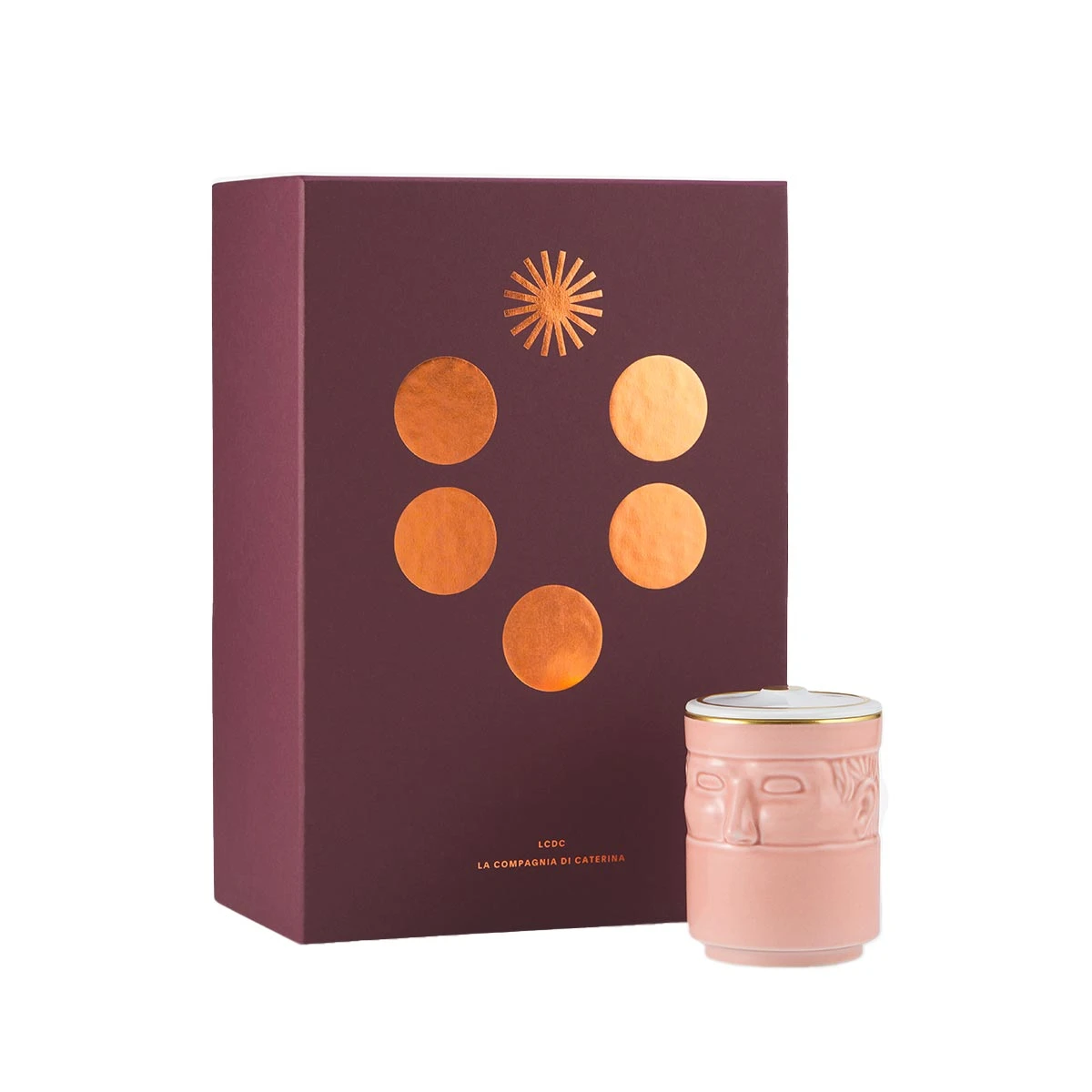 The candleholder with a set of 190-g Orange Renaissance scented candles with cover.