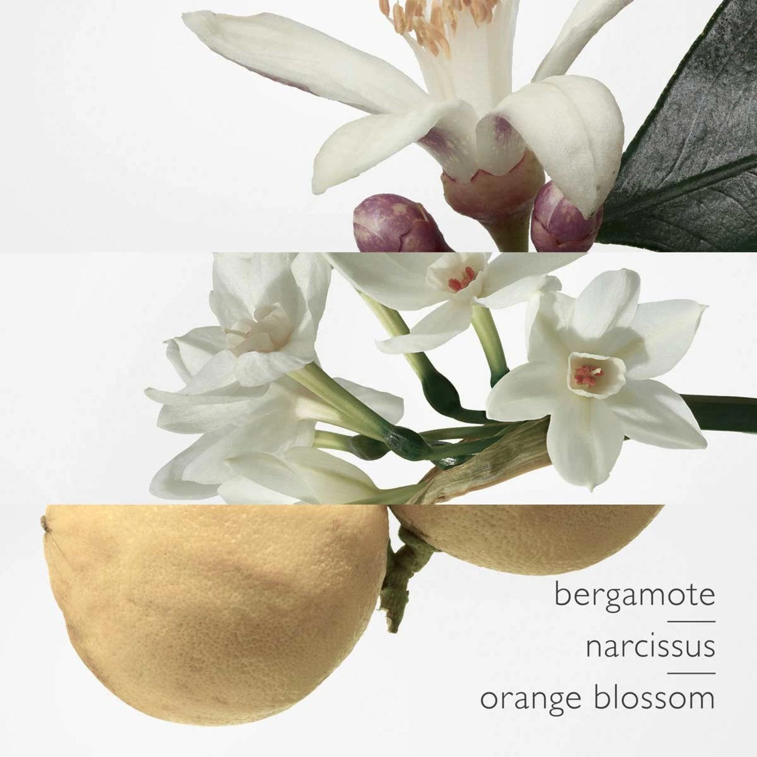 The mysterious freshness of narcissus faceted with notes of orange blossom.