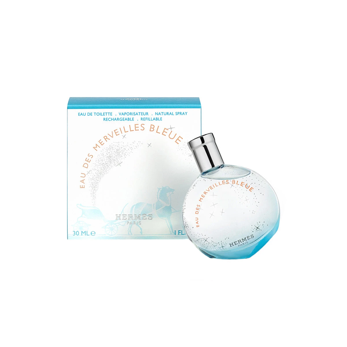 In 2017, Hermès perfumer Christine Nagel created Eau des Merveilles Bleue. A new perspective on the Merveilles constellation, combining the magic of the ocean with the blue of the sky. A childhood memory etched in innocence, fantasy and glittering femininity.
