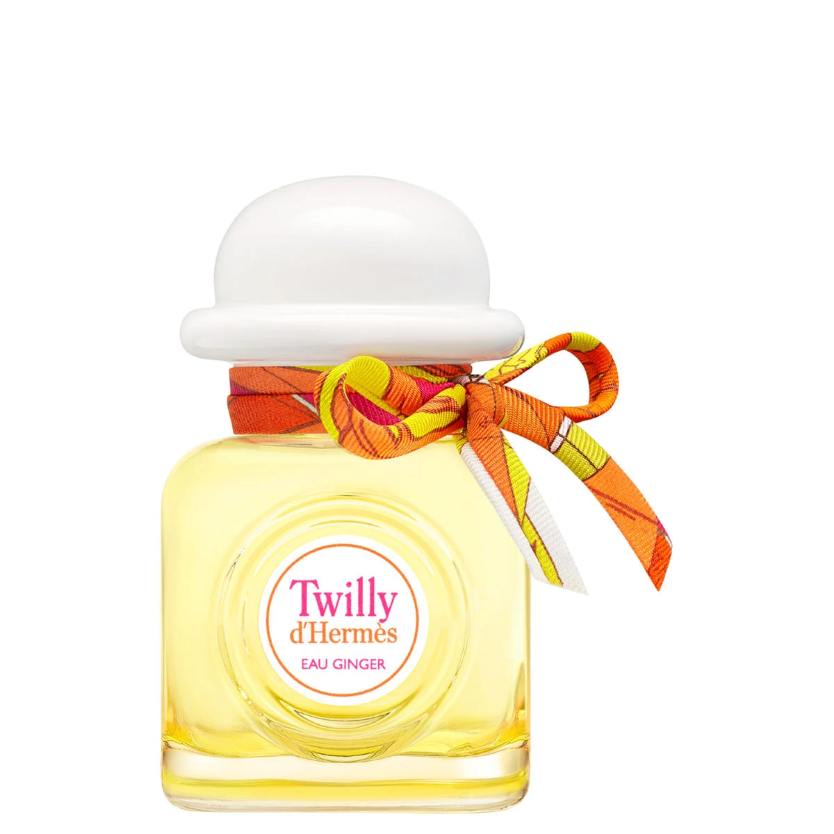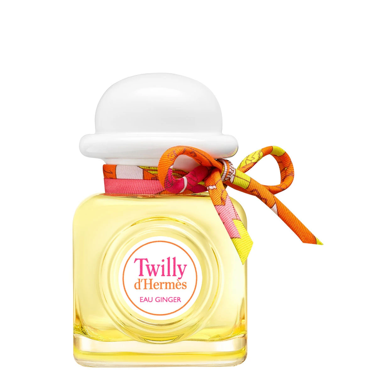 Designed by Florence Manlik, the lantern-shaped bottle has a square silhouette and a cloudy, coral pink colour. With a final flourish, a hand-tied silk ribbon playfully embellishes the cap of each bottle. Each silk ribbon is unique. Each silk ribbon is unique. Its 30 ml format allows you to take the notes of Twilly Eau Ginger with you while on the go to diffuse the sparkle of the Hermès girls anywhere and everywhere.