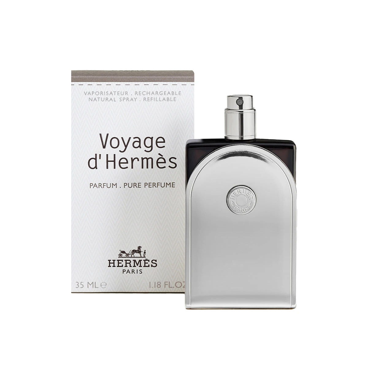 The bottle can be replenished using the 125 ml Voyage d’Hermès Parfum refill. A responsible gesture, integral to an object created to last.